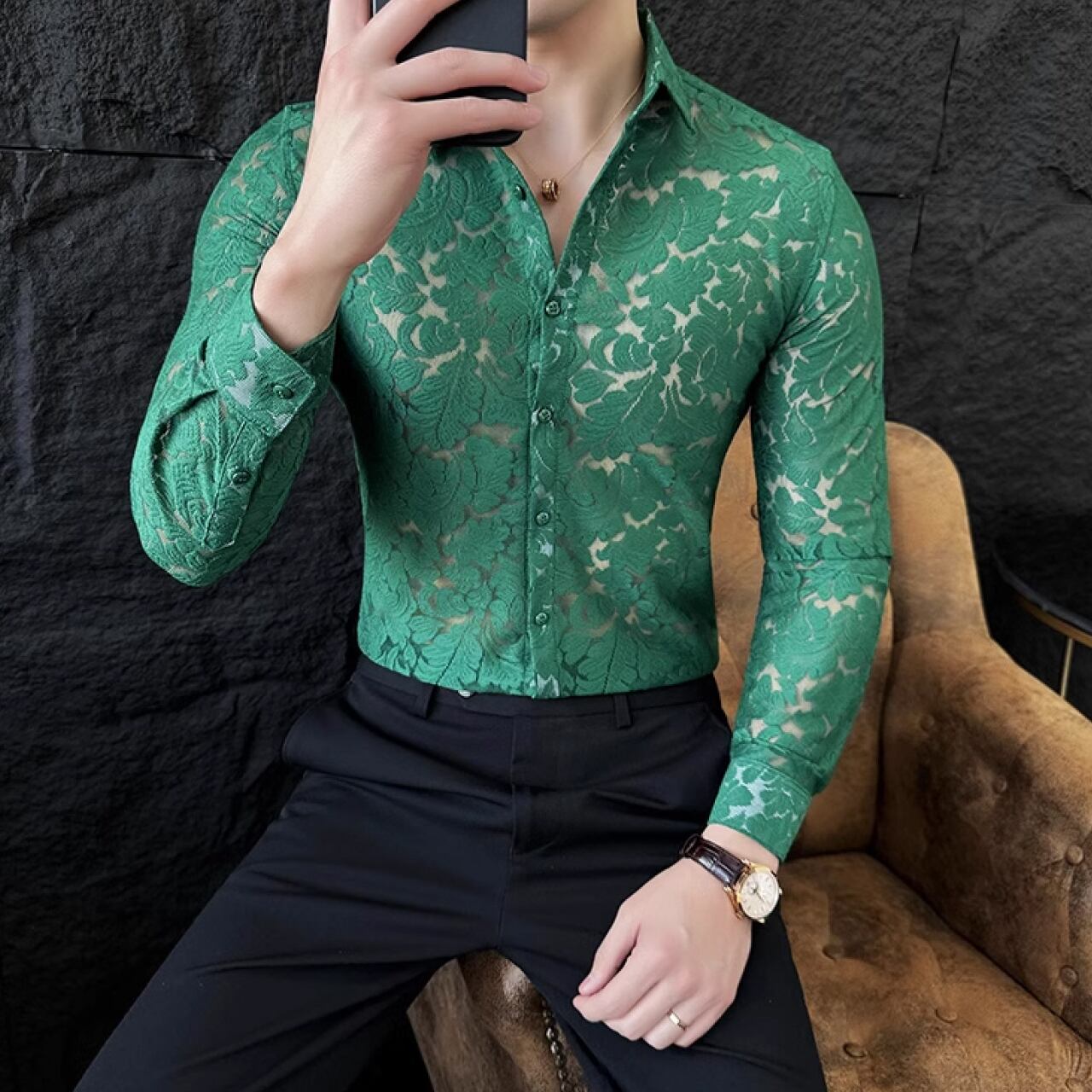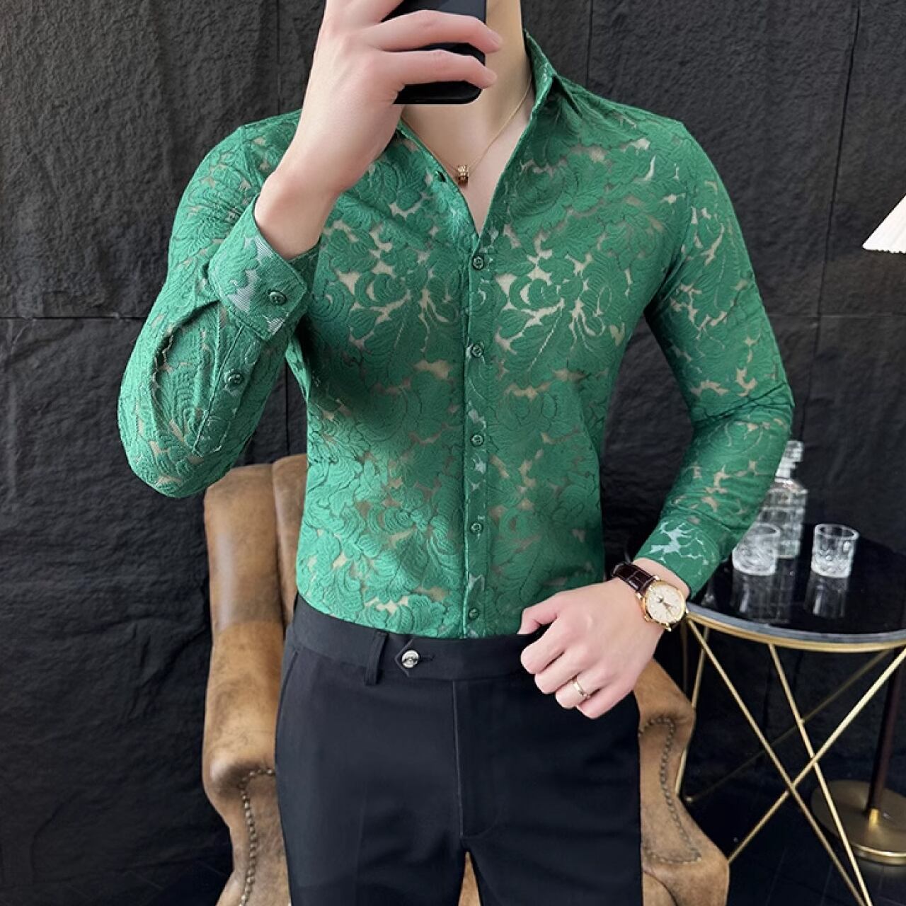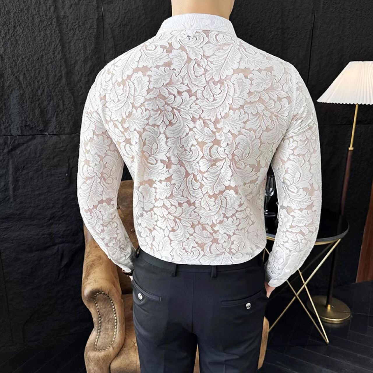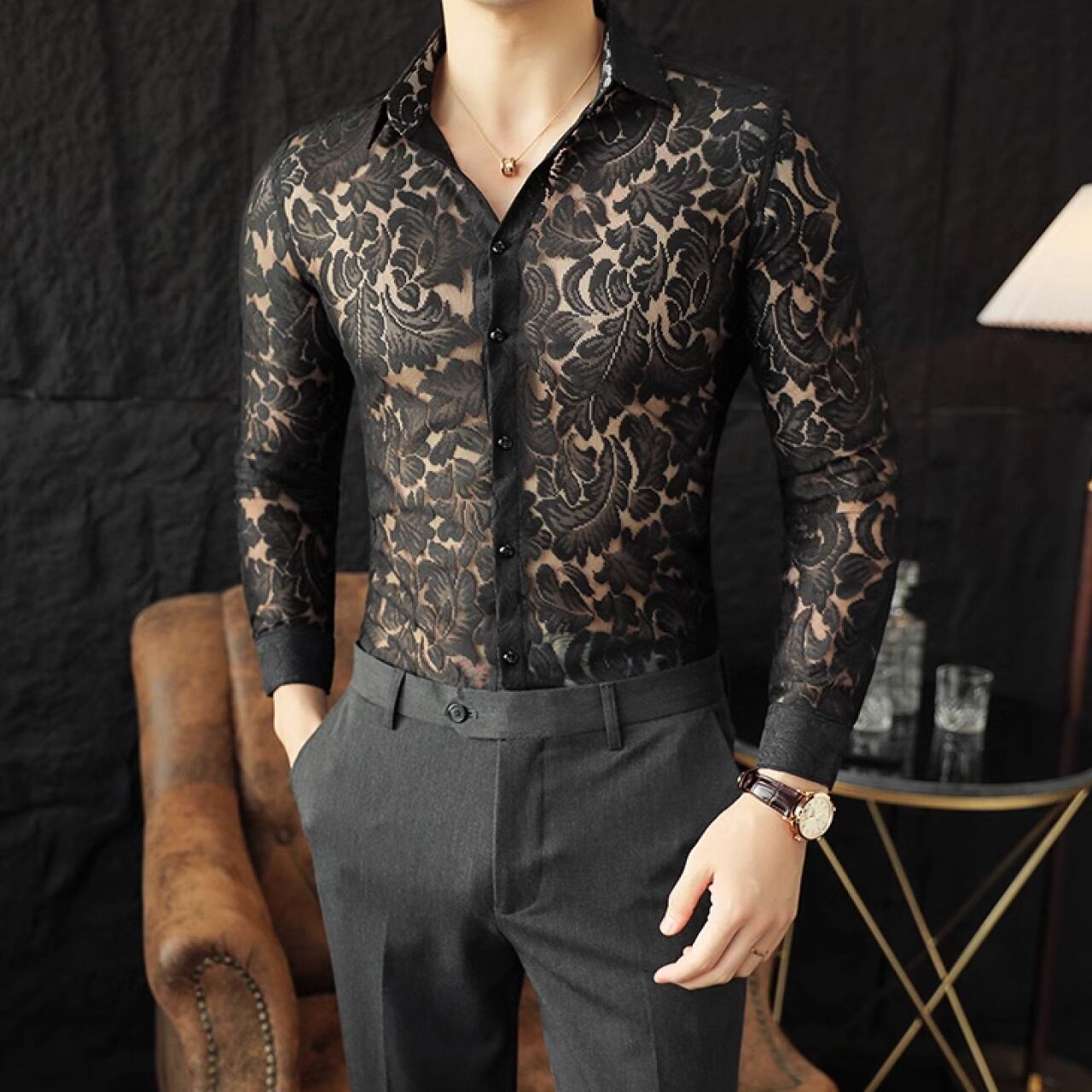 春夏にぴったりな半透明のレースデザインハンサムシャツ SH006