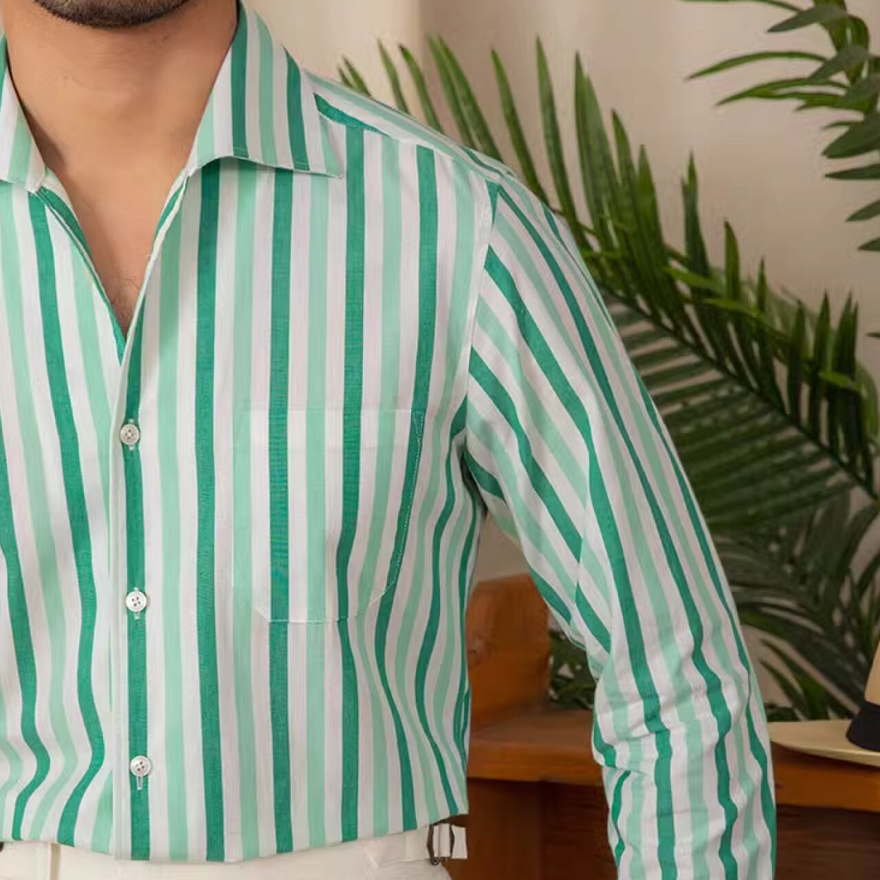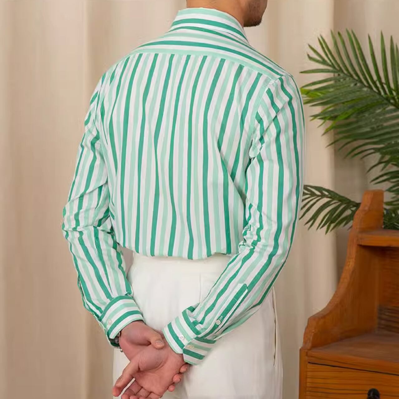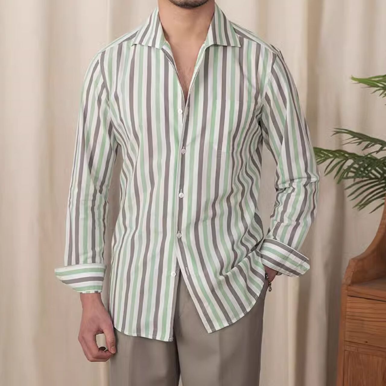 ビジネスカジュアルスタイル 上品なストライプ柄シャツ SH014